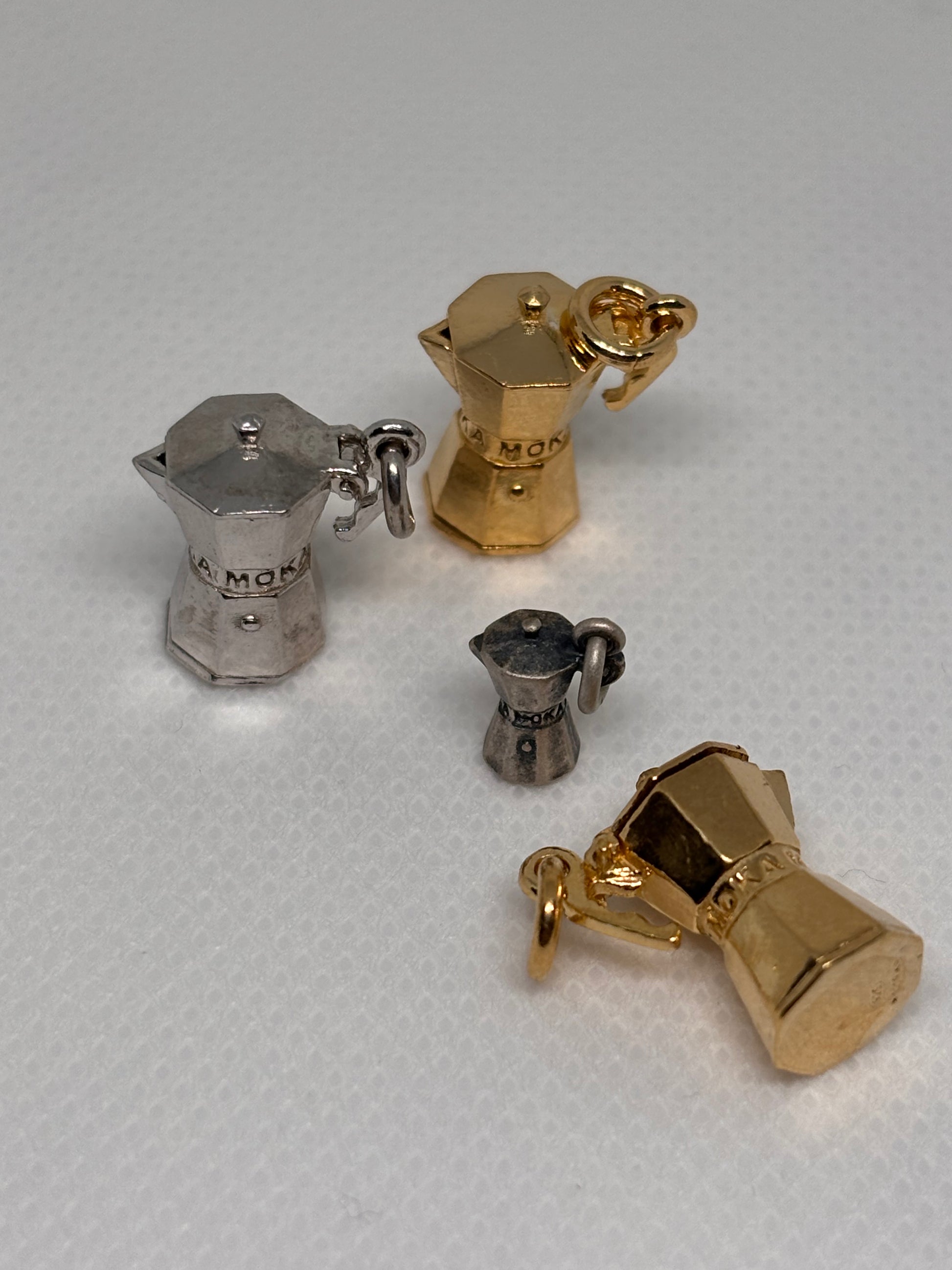 Ciondolo a forma di moka tradizionale… talmente reale che ti fa sentire il profumo del caffè!