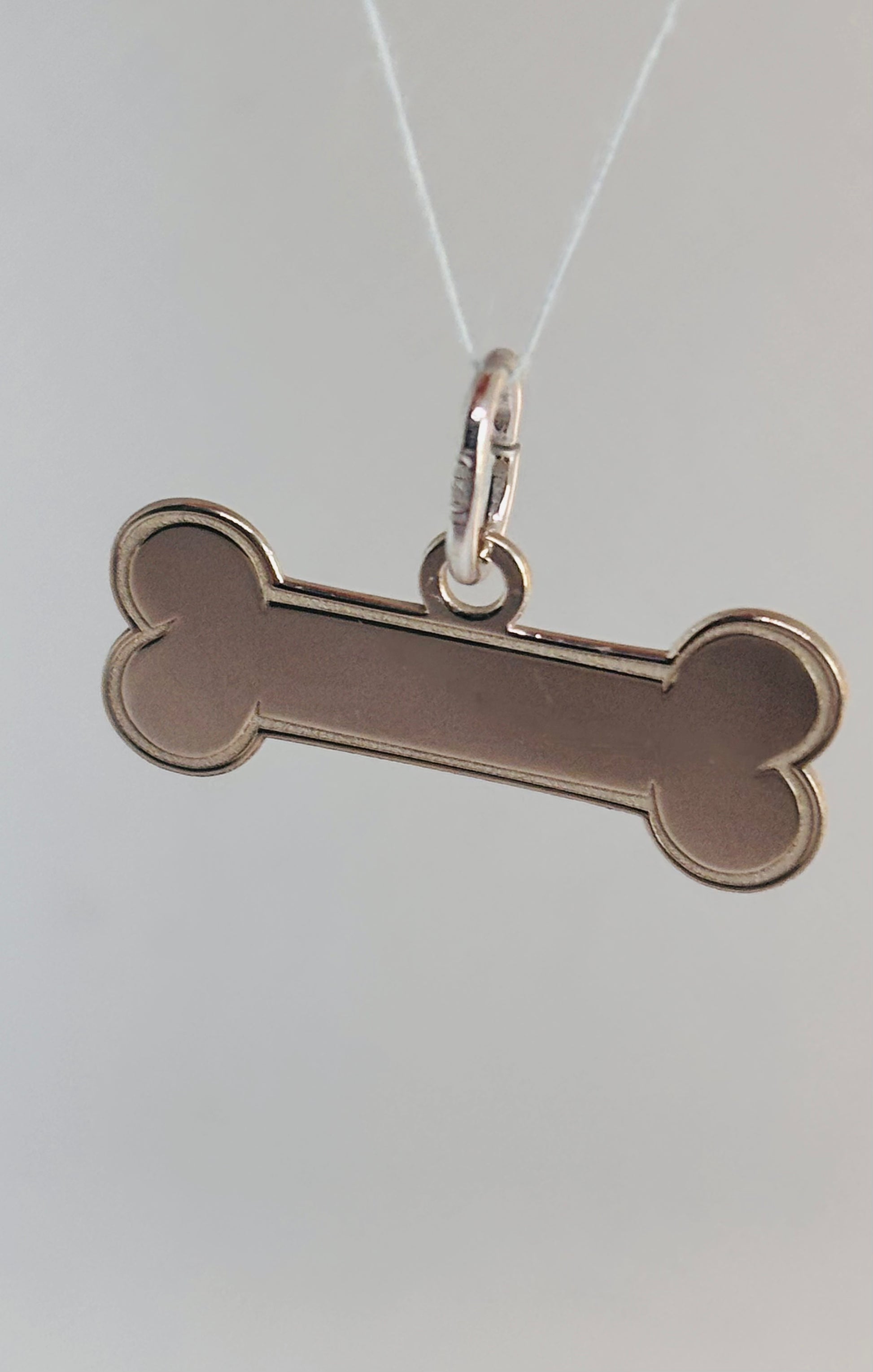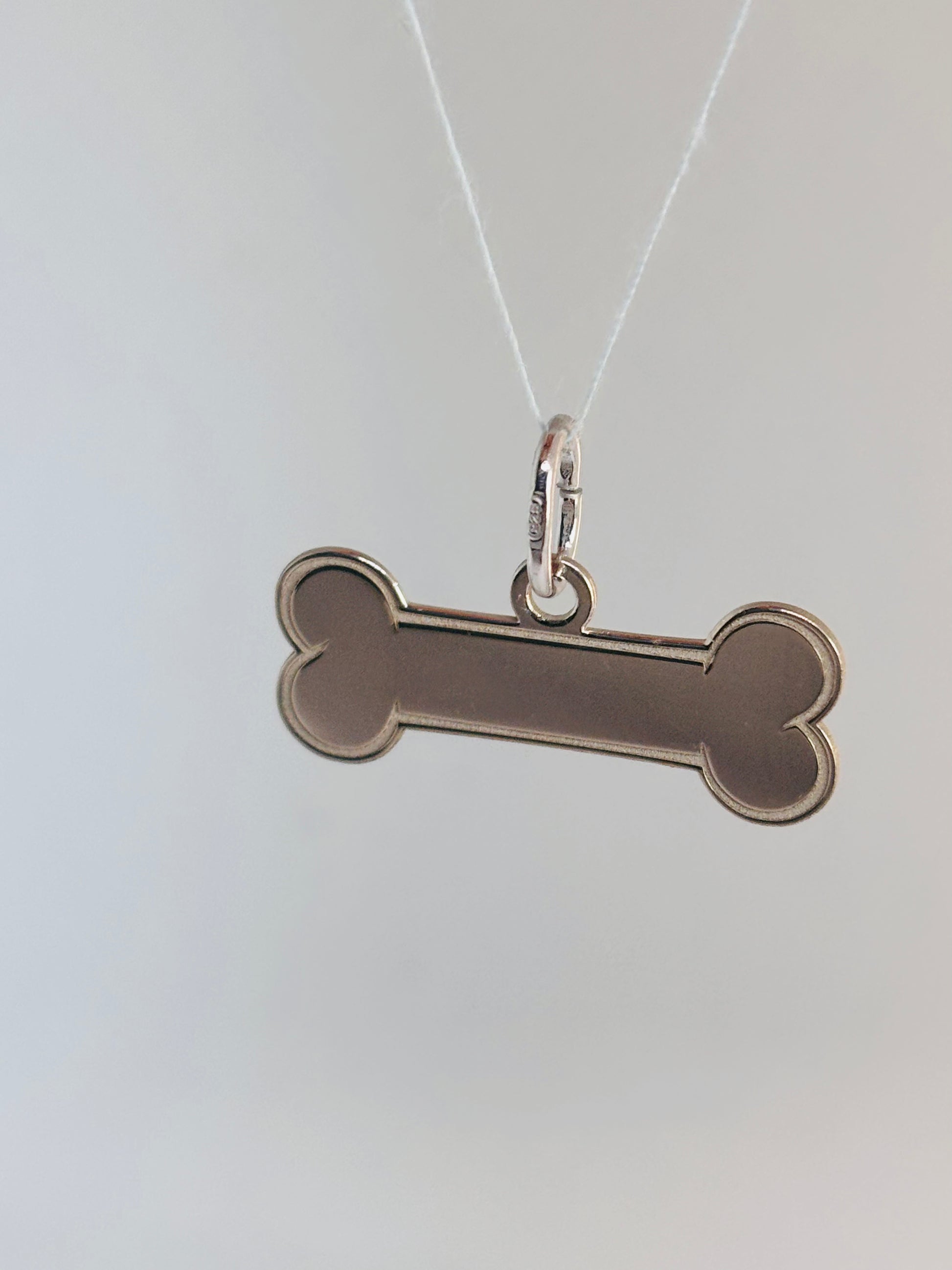 Ciondolo in argento 925/1000 a forma di osso su cui è possibile fare l’incisione.