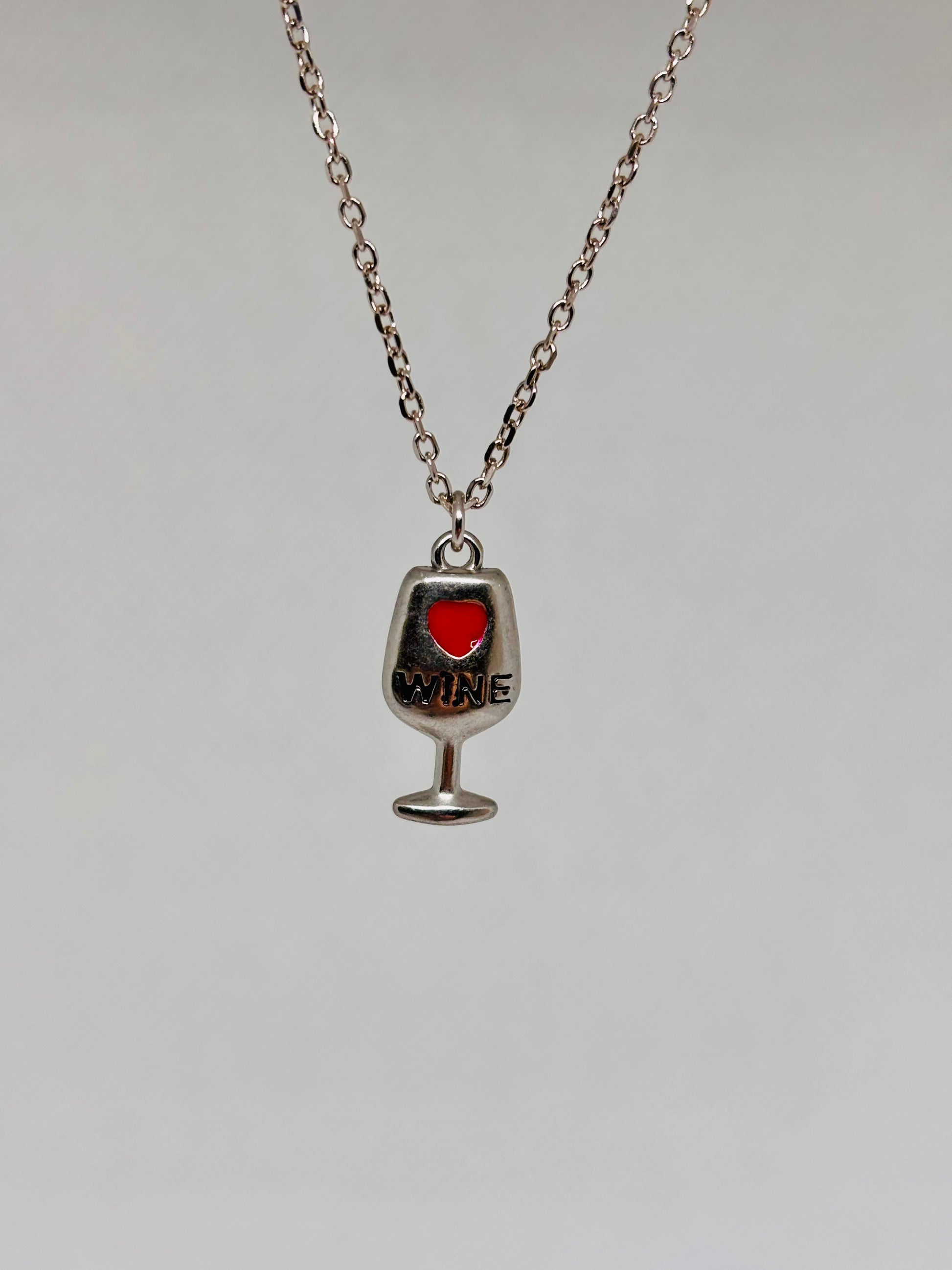 Collana in argento con ciondolo in acciaio a forma di calice di vino con scritta ❤️ wine della collezione Pizzico gioielli.