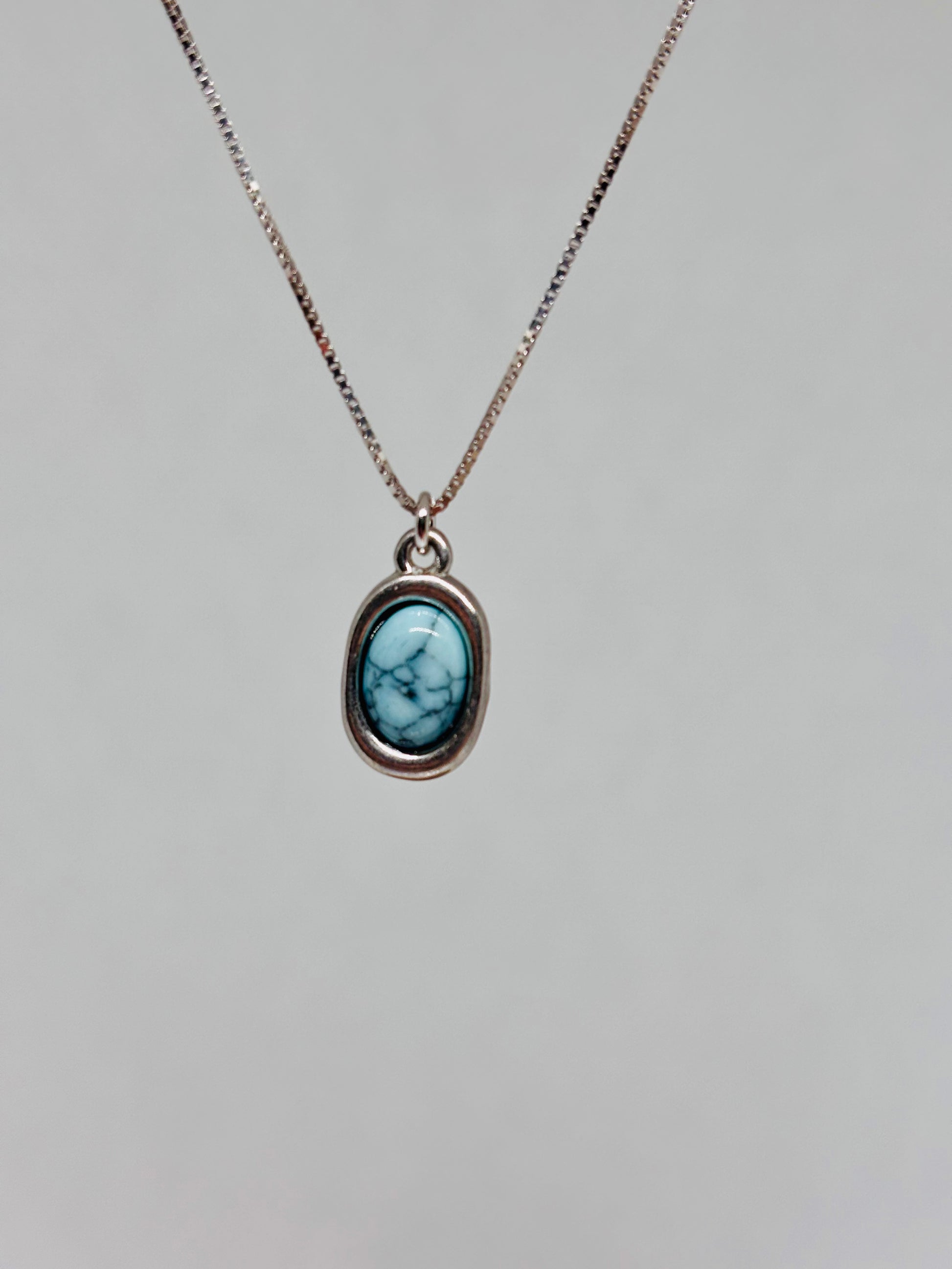 Collana Pizzico in argento con ciondolo in acciaio che monta una pietra naturale azzurro cielo.