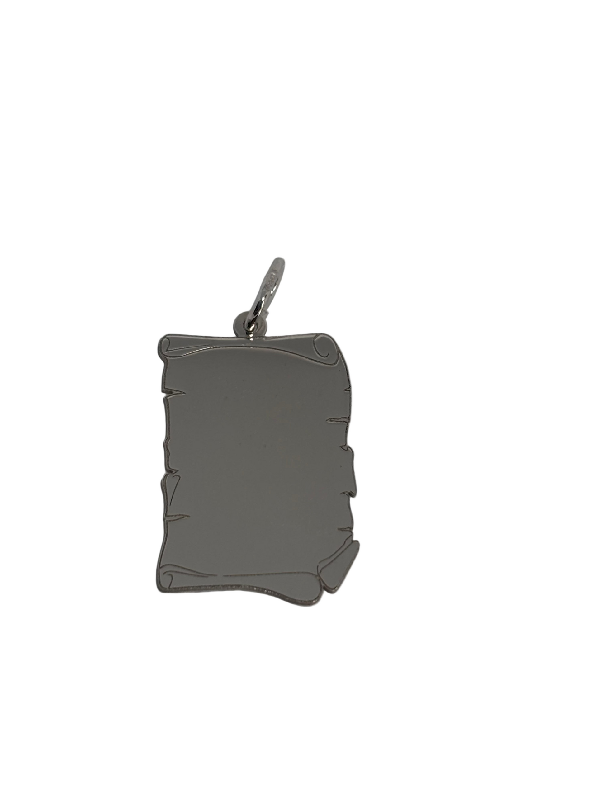 Ciondolo Piastra a forma di pergamena in argento rodiato 925/1000 per incisione.